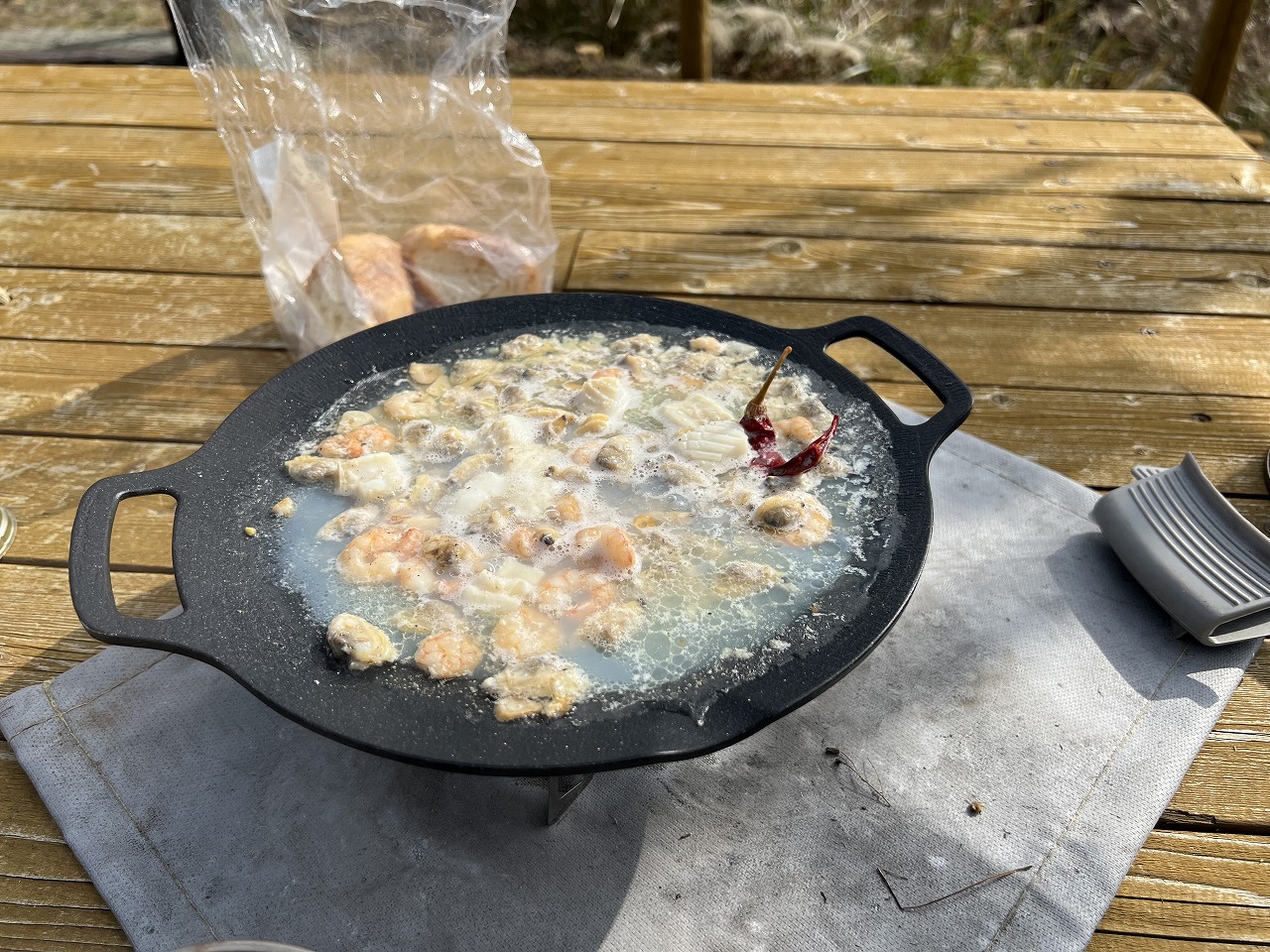 道志の道の駅のベンチで湯を沸かしてコーヒーをもう一杯。