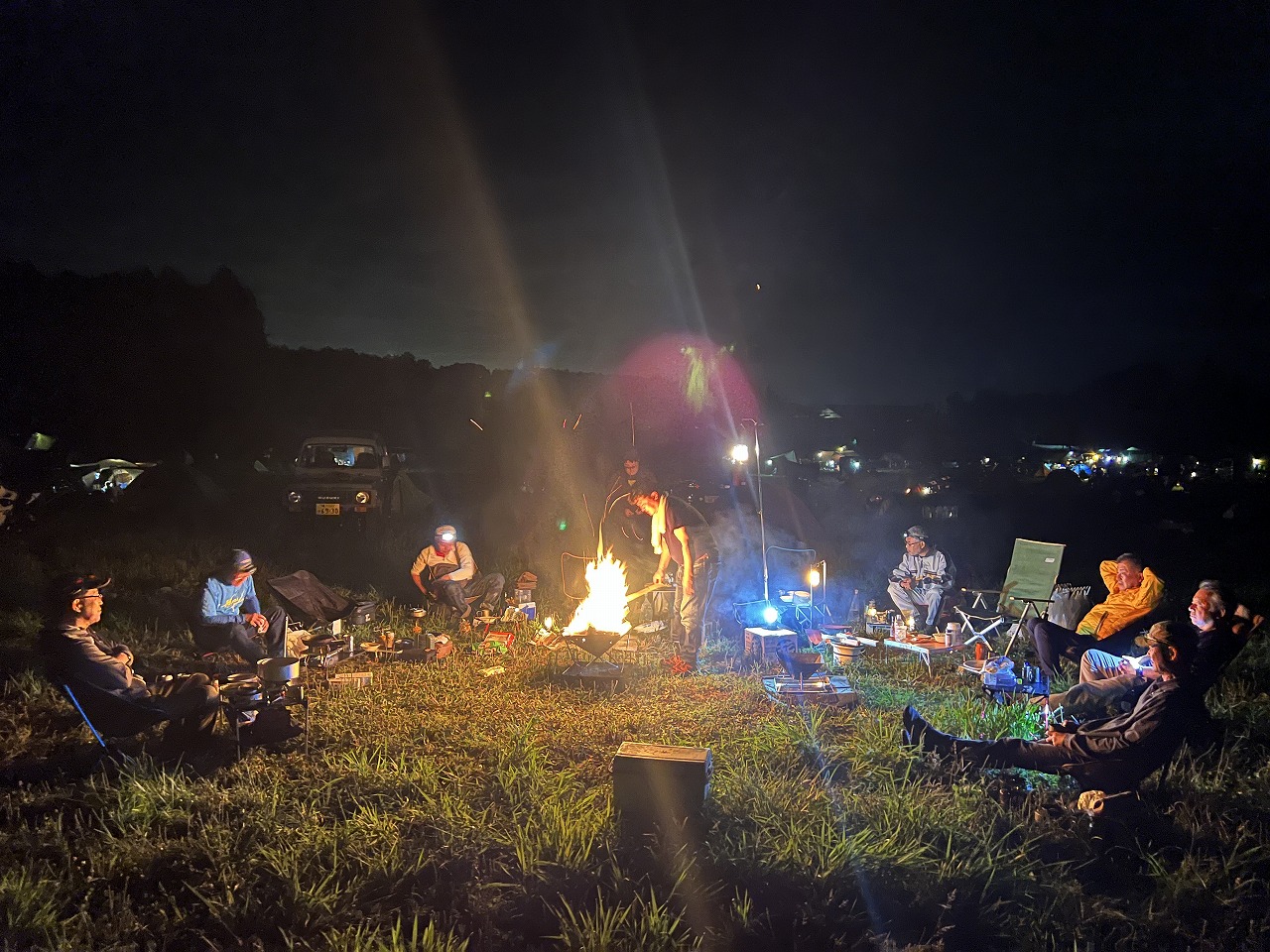 焚火を囲んで行われた、「バイク版すべらない話」も、