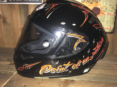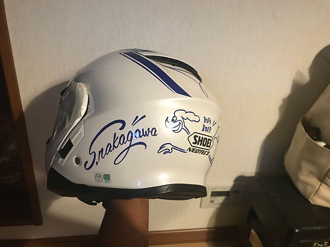 お名前・座右の銘・またはバイクのカラーに合わせたラインなど描いてもらうのはいかがでしょう。